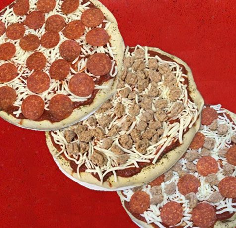 NY Style Sausage and Pepperoni – 12” New York style pizza loaded with our special marinara sauce, sausage, pepperoni, and mozzarella cheese.